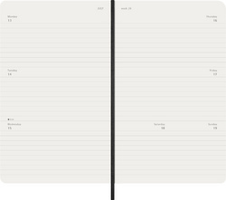 MOLESKINE Agenda 2026, semainier, L/A5, souple, noir – semainier, 130 x 210 mm, 1 semaine = 2 pages, mise en page horizontale, reliure souple, coins arrondis, papier blanc ivoire, 70 g/m2, sans acide, avec élastique de fermeture et signet, langue: anglais, 144 pages (8056999275297)