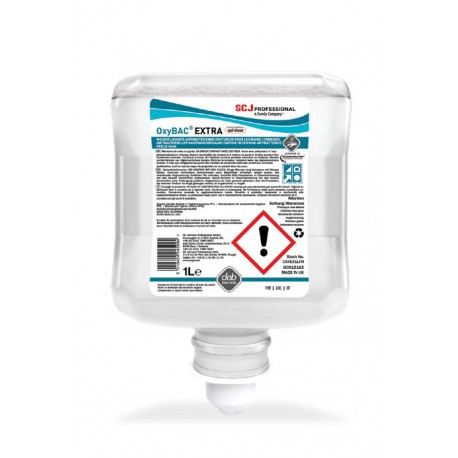 OxyBac EXTRA est une mousse lavante antimicrobienne hautement efficace à large spectre, sans parfum ni colorant, conçue pour un usage professionnel. Elle contient de l’AHP® (Peroxyde d’hydrogène accéléré®) pour nettoyer les mains et éliminer 99,999 % des bactéries les plus communes et 99,99 % des levures et virus les plus communs.