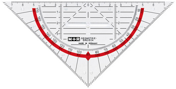 M+R Equerre géométrique, verre acrylique, hypoténuse: 160 mm – transparent, échelle de degrés opposés, en surbrillance rouge, dans un sachet en papier (723170040)
