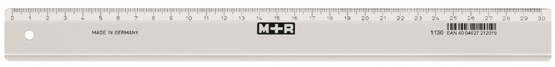 M+R Règle en plastique, longueur: 300 mm, étroit,transparent – échelle en relief avec graduation en mm (711300000)