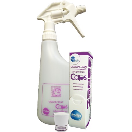 Poltech Gammaclean est un Puissant nettoyant désinfectant qui permet en une seule opération le nettoyage et la désinfection de toutes les surfaces lavables alimentaires et non-alimentaires (tables, ustensiles inox, sols, murs, …). Produit agréé pour le contact alimentaire.