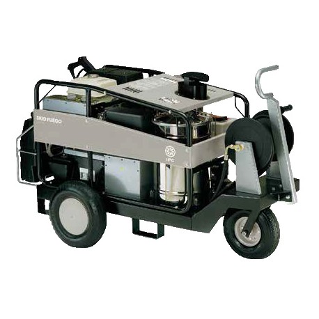 Nettoyeur HP / eau chaude / essence. Moteur puissant Honda GX 340 LX refroidi par air 4 temps. Chariot à châssis tubulaire avec revêtement en poudre époxy polyester. By-pass – BYP. Contrôle de l’accéleration du moteur – cam. Allumage chaudière – AC. Pression 70 à 180 bars. Débit 680 à 1080 L/h. 6 h d’utilisation quotidienne.