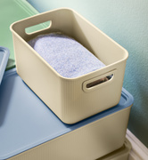 NHG Boîte de rangement AKITA STORAGE S, PP, bleu – livré sans couvercle (en option), matériau: en PP recyclé, surface rainurée, poignées intégrées, volume: 5 litres, empilable avec le couvercle, dimensions: (L)256 x (P)173 x (H)136 mm (60830800)