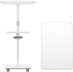 nobo Chevalet de conférence Mobil Move & Meet, blanc – magnétique, surface en acier laqué, avec double tableau blanc amovible, trépied réglable en hauteur avec roulettes blocables, bras extensible, auget amovible, taille du tableau: (l)680 x (H)1