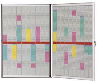 nobo Kit planning, pliable, fermable à clé, avec accessoires – en métal, extérieur inscriptible et magnétique, intérieur: système de fiches en T pour porte-fiches de 54 fentes, pour des cadres de taille 20, inclus 2 clé, kit de fixation murale, 10 kits de fiches en T colorés avec 100 fiches resp