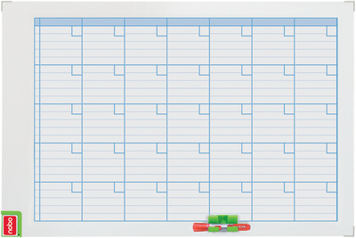 nobo Planing mensuel Performance,(L)900 x (H)600 mm – 1 mois en journée, blanc, magnétique, tableau inscriptible avec surface laquée, brosse intégrée et porte-marqueur,cadre en aluminium, incl