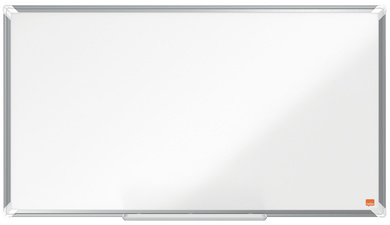 nobo Tableau blanc mural Premium Plus Stahl Widescreen, 70″ – (L)1.550 x (H)870 mm, surface blanche laquée en acier, magnétique, cadre en aluminium, auget porte-marqueurs amovi- ble, fixation par les coins, coins