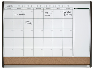 • calendrier avec surface supplémentaire pour notes, inscriptible avec des marqueurs pour tableau blanc effaçables à sec