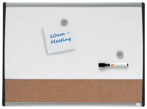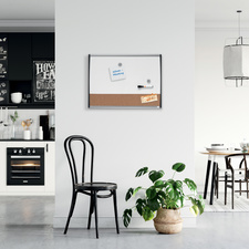 nobo Tableau combiné avec cadre arqué, (l)585 x (H)430 mm – partie supérieure en tôle d’acier blanche, partie inférieure surface en liège, tôle d’acier magnétique, cadre noir-argent bombé, fixation murale avec pastilles adhésives ou aimants de fixation (fournis), marqueurs & 2 aimants incl