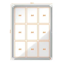 La vitrine d’affichage est idéale pour communiquer toutes les informations que vous le souhaitez en accrochant jusqu’à 9 feuilles au format A4. La porte battante s’ouvre sans contrainte et vous donne une grande accessibilité à la vitrine d’affichage. Verouillable par une serrure à clé, vos documents sont en sécurité.