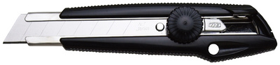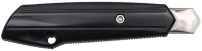NT Cutter eL-500, boîtier en plastique, noir – Plastique recyclé avec guide-lame en métal, lame 18 mm, blocage de lame par vis et casse-lame, blocage de sécurité pour le changement de lame, oeillet de suspension, avec 3 lames de rechange, lames adaptées: L 150 et BL 300 (h1310510)