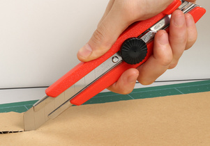 NT Cutter L-500P, boîtier en plastique, 18 mm, rouge – guide-lame en métal, avancement de la lame avec auto-verrouillage, clip avec casse-lame, arrêt de sécurité pour le changement de lame, avec 3 lames de rechange (h1310597)