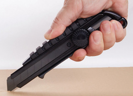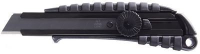 NT Cutter PMGL-EV02, boîtier en aluminium, 18 mm, noir – guide-lame en métal, avancement de la lame avec blocage à vis, clip avec casse-lame et dispositif de suspension, poignée en caoutchouc, lames noires très aiguisées (h1310620)