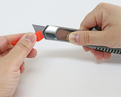 • retour automatique de la lame dans le corps en cas de relâchement de la coulisse