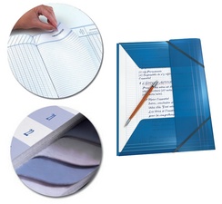 • une pochette tranparente en PP avec 3 rabats et élastiques pour protéger et transporter des documents