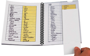 • avec une bande opaque repositionnable pour cacher les mots à apprendre