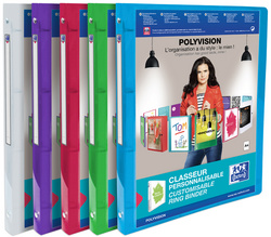Oxford Classeur personnalisable POLYVISION, 20 mm, incolore – en PP, format A4, mécanisme à 4 anneaux, transparent, souple dos: 20 mm, diamètre de l’anneau: 16 mm, pochette extérieure sur la couverture, dimensions: (L)250 x (H)310 mm (100202277)