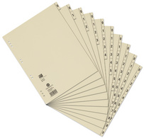 Oxford Intercalaires, 240 x 300 mm, imprimé 2 faces, chamois – en carton kraft, 230 g/m2, impression recto-verso: chiffres 0-9 et champs 10/20, perforation: 60 & 80 mm, dimensions: (L)240 x (H)300 mm contenu: 100 feuilles (400004663)