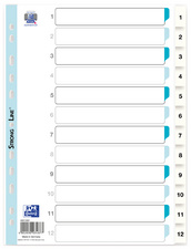 Oxford Intercalaires en plastique, chiffres, A4, 12 touches – blanc, chiffres: 1 à 12, en PP, 0,15 mm, couverture inscriptible, perforation Euro,dimensions: (L)230 x (H)297mm (ancien: 03487 / nouveau: 100420789)