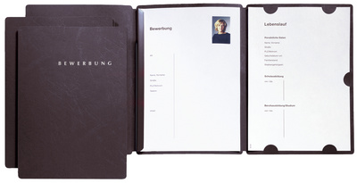• mit Halbmondstanzungen zur Aufnahme von Anschreiben, Lebenslauf und Zeugnissen