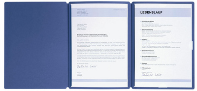 • mit Halbmondstanzungen zur Aufnahme von Anschreiben, Lebenslauf und Zeugnissen