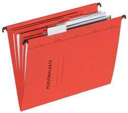 PAGNA Personalakte, aus Karton, 5-fach, rot – —————— für den Markt: D / L / A / CH ———– Hängemappe mit 2 Hängeschienen, verschiebbarer Sichtreiter, Beschriftungsschild, 4 Fächer, 3 Klappen-Tasche (44105-01) Personal-Hängemappe