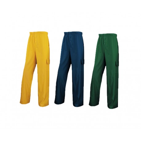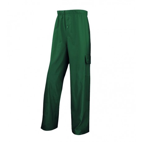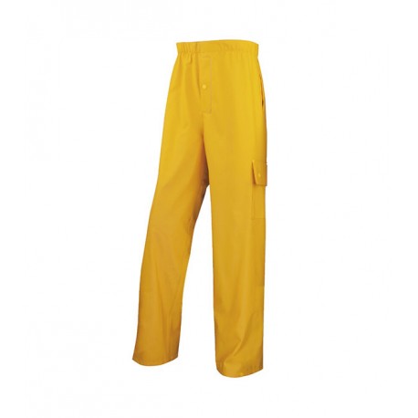 Pantalon de pluie imperméable et respirant enduit PVC/PU sur textile renforcé pour plus de durabilité quand les conditions climatiques se dégradent.