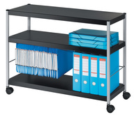 PAPERFLOW Chariot multifonction S, 3 étagères, noir / argent – peinture epoxy, étagères laquées en noir, épaisseur des étagères: 2 mm, dispositif dossiers suspendus, capacité de charge: 35 kg/étagère, renforts chromés, 4 roues pivotantes (DP3S