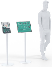 PAPERFLOW Porte-infos, A3, hauteur : 1.272 mm – cadre en polystyrène, fenêtre de visualisation en polysty- rène transparent, support en polystyrène blanc, résistant aux chocs, tube & base en acier, orientation en format portrait ou paysage possible, (PIA3
