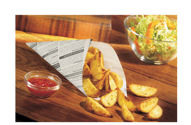 PAPSTAR Cornet “Newsprint”, 270 x 190 x 190 mm – papier sulfurisé, 40 g/m2, capacité: 125 g, résistant à la graisse, compostable, idéal pour frites, potatoes, etc