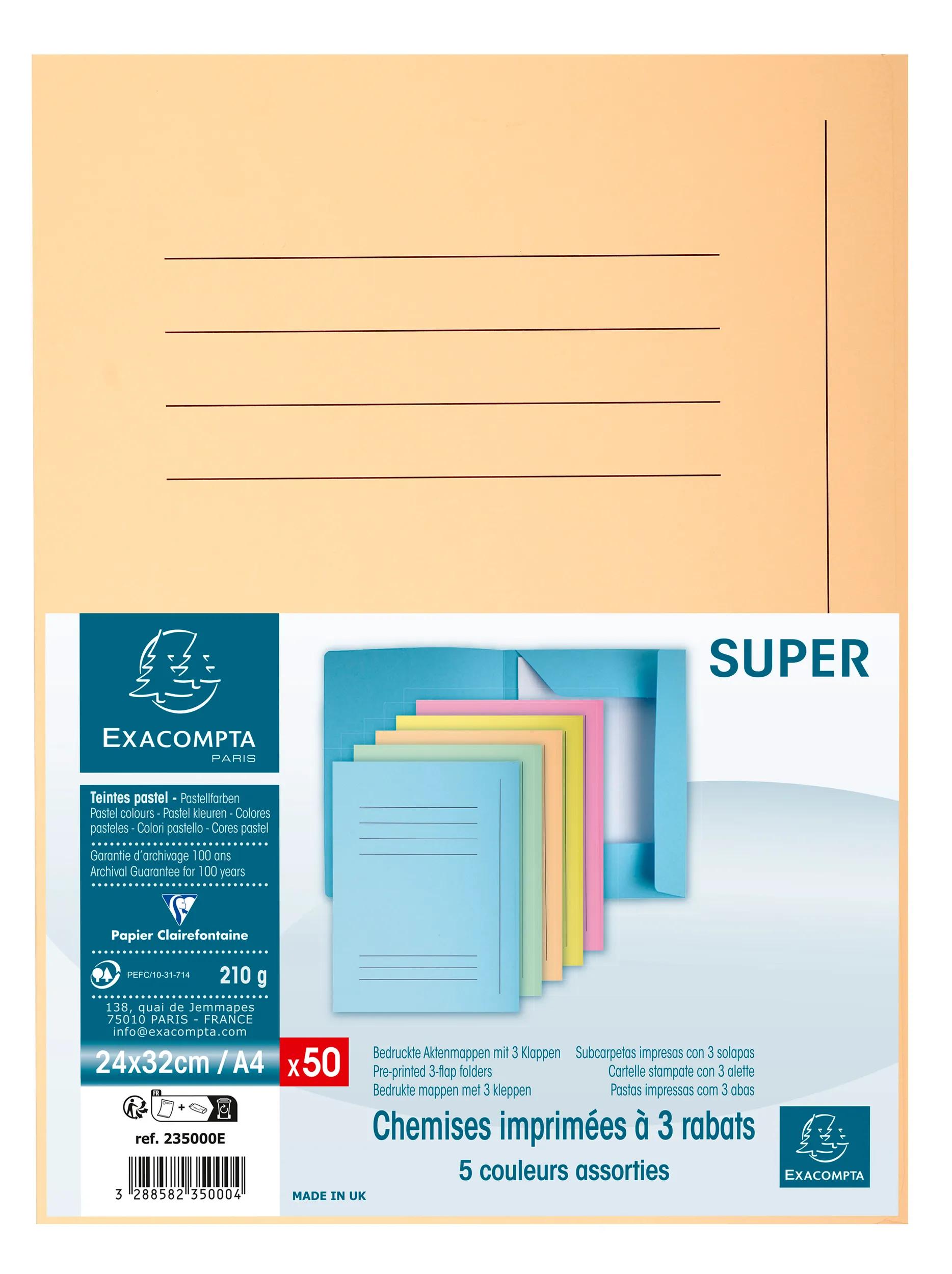 SUPER est une gamme de chemises haute qualité, coloris pastel pour un classement doux, facile à identifier en manuscrant au simple stylo le contenu.