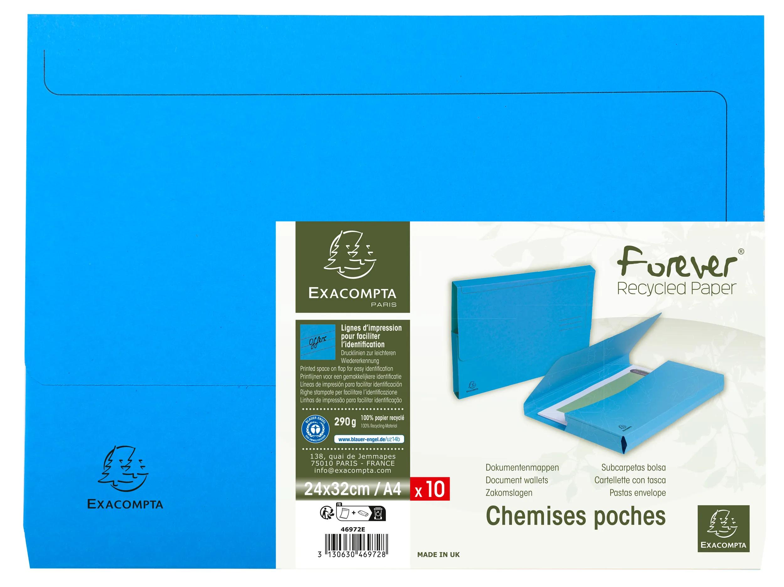Les chemises poche de la gamme Forever® sont fabriquées en carte 100% recyclée, certifiée Ange Bleu.