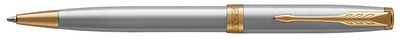 PARKER Stylo à bille SONNET Acier G.T. – largeur de tracé; M, couleur de tracé: noir, mécanisme torunant, corps en finition acier avec effet métal brossé, détails finition or, dans un élégant étui cadeau, avec mine (1931507)