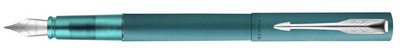 PARKER Stylo plume VECTOR XL, bleu sarcelle mat métallisé – C.C., capuchon et corps en laiton laqué avec effet métallisé satiné, plume en acier, taille de plume: M, bloc section en plastique coloré transparent,
