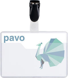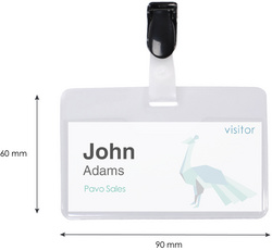 pavo Porte-badge, avec clip, 60 x 90 mm, transparent – en plastique, format paysage, avec clip en plastique, ouvert vers le haut, face avant coupée, 1 insert papier blanc pour chaque badge inclus contenu: 25 pièces (8009213)