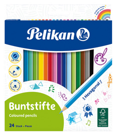 Pelikan Crayons de couleur standard, étui en carton de 24, – longueur:175mm, épaisseur de mine: 3,0mm, couleurs assorties contenu: 24 pièces hexagonal (nouveau: 100401615 / ancien: 724013 / BS24LN) assorti dans les couleurs blanc, jaune clair, jaune, orange, 7 teintes rouge, violet clair, violet, 4 teintes bleues, beige, vert, vert fomcé, marron, marron clair, ocre, noir