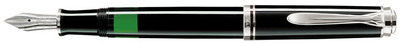 Pelikan Stylo plume “Souverän 405”, noir/argent, M – mécanisme à piston, clip décoré au palladium, plume en or rhodiée 14-K/585, corps en résine précieuse, taille de plume: M, livré dans un étui cadeaux (924423 / M405)