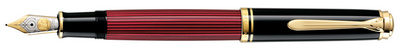 Pelikan Stylo plume “Souverän 800”, EF, noir/rouge – avec mécanisme à piston, clip plaqué or 24 carats, plume en or 18 carats/750 entièrement rhodiée, corps en résine pré- cieuse, tige avec rayures Stresemann, taille de plume: EF, livré dans un étui cadeaux (816601 / M800)