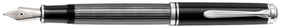Pelikan Stylo plume “Souverän 805”, noir/anthracite, M – avec mécanisme à piston, clip décoré au palladium, plume en or complètement rhodiée 18-K/750, corps en résine précieuse, stylo avec rayures Stresemann, taille de plume: M, livré dans un étui cadeaux (957639 / M805)