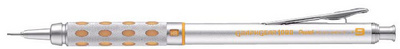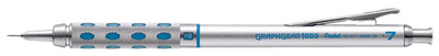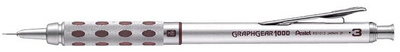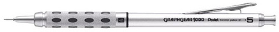 Pentel Porte-mines GRAPHGEAR 1000, diamètre de mine: 0,5 mm – couleur: argent/noir, manche en métal, mécanisme Safety-Clic conduite de mines complètement escamotable, grip à picots caoutchouté, degré de dureté réglable, gomme et 3 mines incl (PG1015-A)
