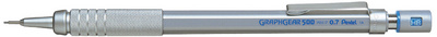 Pentel Porte-mines GRAPHGEAR 500, diamètre de mine: 0,5 mm – couleur: argent/ noir, boîtier en plastique, 4 mm de longueur de mine degré de dureté réglable, gomme et 3 mines incluses (PG515-A)