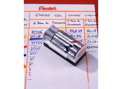 • durée d’écriture 3 fois plus longue que celle des marqueurs pour tableau blanc avec système tampon