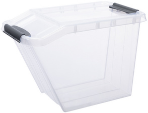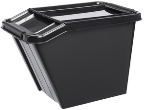 Plast team Bac de rangement PROBOX SLANTED, 58 litres – boîte et couvercle, couleur : noir, clips gris, dimensions : (L)395 x (P)650 x (H)438 mm, matériau : PP recyclé, avec couvercle sur le rabat (27750801)