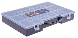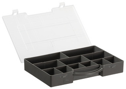 Plast team Boîte d’assortiment HOBBY BOX SMALL, gris – 11 compartiments de différentes tailles, couvercle transpa- rent, dimensions : (L)275 x (P)206 x (H)42 mm, idéal pour ranger clous, vis, boutons, perles etc
