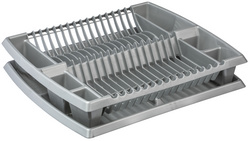 Plast team Égouttoir à vaisselle avec tablette, argent – matériau: PP, le socle récupère l’eau qui s’égoutte, égouttoir pour assiettes & compartiments pour verres, dimensions: (L)442 x (P)383 x (H)85 mm (13480802)