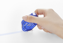 PLUS JAPAN Roller de colle One Action TG-1920, bleu – 8,4 mm x 8 m, tête et bande adhésive protégées par capuchon, rechargeable, adhésion permanente, boîtier plastique transparent (54654)