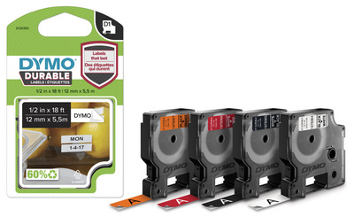 DYMO Ruban d’étiquette D1 noir/blanc, 12 mm x 5,5 m – en vinyle, résistet aux rayons uv, à l’eau, aux températures de -40 jusqu’à +80 degrés, résiste à l’huile, solide contre les produits chimiques, couleur d’écriture: noir, couleur du ruban: blanc, etiquettes High Performance (1978364) pour DYMO POCKET/1000 PLUS/2000/3500/4500/5500 LabelManager PC/100/100 PLUS/150/160/200/260P/300/400/450 Labelpoint 100/150/200/250/300/350/450