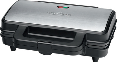 PROFI COOK Appareil à croque-monsieur PC-ST 1092, inox/noir – plaque de sandwich pour les tranches de toast XXL, revêtement anti-adhérent, réglage de température automatique pieds en caoutchouc, protection anti-surchauffe, 220 – 240 volts, 50/60 Hz, 900 watts (501092) prise à contact de securité – pour CH avec adaptateur fixe