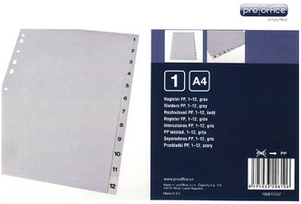 proOFFICE Intercalaires en plastique, numériques, A4 – 12 touches, en PP, épaisseur: 0,12 mm, gris, 11 perforations (nouveau: 00810137 / ancien: 10071926-002)