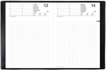QUO VADIS Agenda “Maor” avec crayon, 2026, noir – 85 x 130 mm, 1 jour/page, de janvier à décembre, 12 mois, couverture plastique grainé noir Impala, reliure cousue, papier blanc quadrillé, fermeture auto-agrippante, grille multilingue (283027Q)